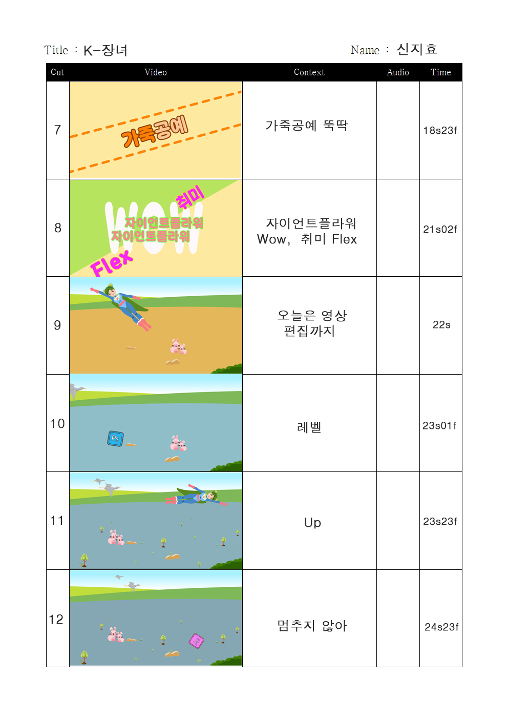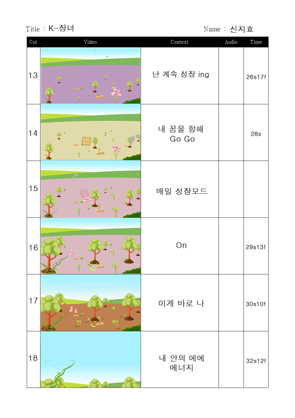 캐릭터 에니메이션 텍스트 자기소개를 완성함